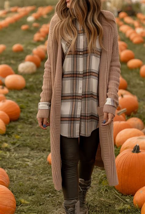 Fall is synonymous with flannel, and a warm, plaid flannel shirt is an essential for any pumpkin patch outing. Pair it with a classic pair of denim jeans, and you have a timeless and effortlessly stylish look. Accessorize with a chunky scarf and ankle boots for extra coziness.