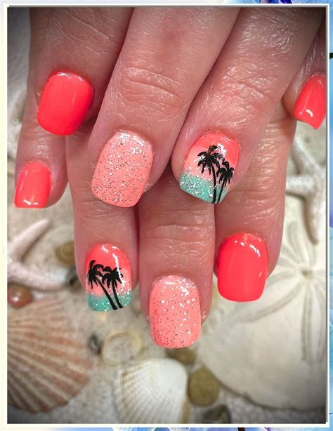 Bring the tropics to your nails with palm tree designs. Paint a few small palm trees on your accent nails, or create a full-blown palm tree scene with a detailed silhouette. Add a touch of gold or silver leaf for a metallic accent.